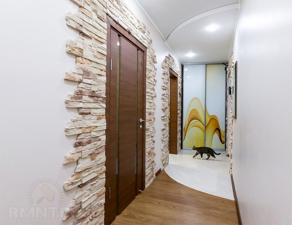 La décoration du couloir avec de la pierre décorative et du papier peint devient de plus en plus populaire. Tout d'abord, parce qu'elle est pratique, et en plus de cela, une pierre décorative n'a souvent pas l'air pire qu'une pierre naturelle et le couloir acquiert un aspect créatif.