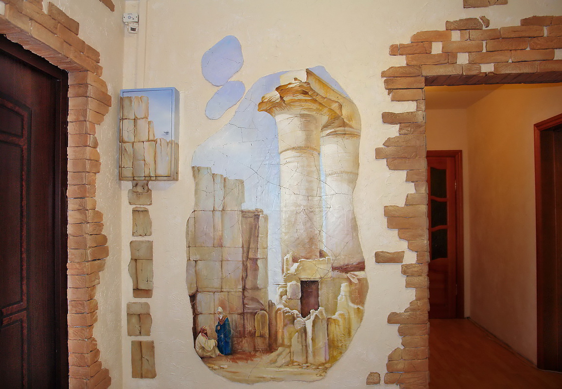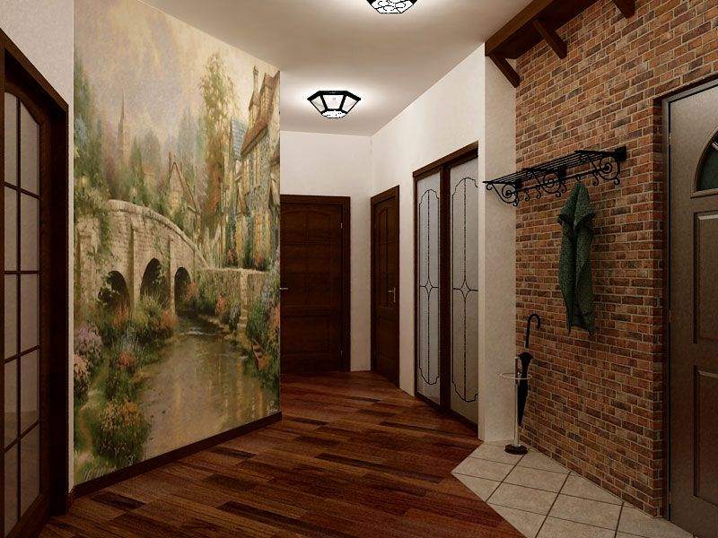 Les peintures murales recréent absolument n'importe quelle image. Avec leur aide, vous pouvez souligner le thème du couloir de la pièce.