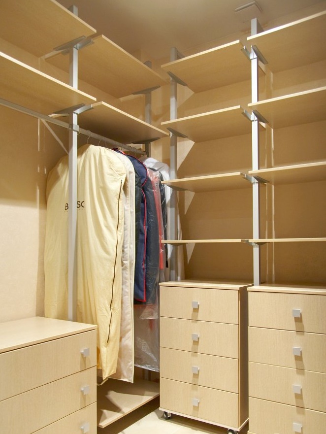 - À Brezhnevka, les dimensions vous permettent de concevoir une pièce à part entière avec différents types d'étagères, des tiges à charnières, des miroirs de croissance.