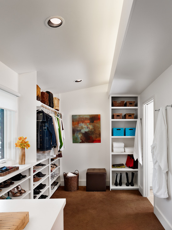 C'est la première chose qui me vient à l'esprit: lancer la barre transversale, suspendre les épaules et, le tour est joué, le dressing est prêt. En fait, avec la création compétente d'une telle pièce, chaque centimètre carré de surface utilisable devrait être impliqué.