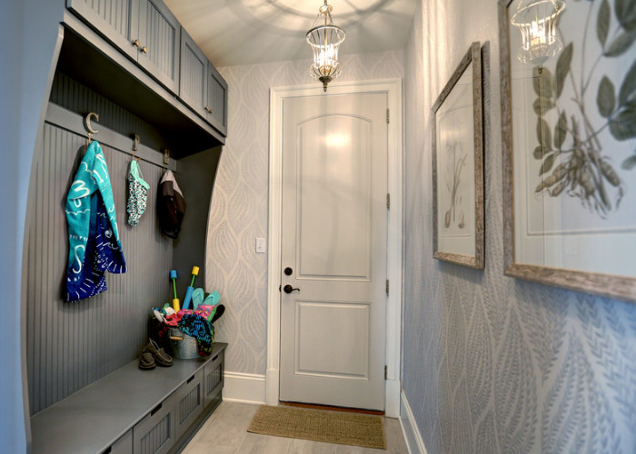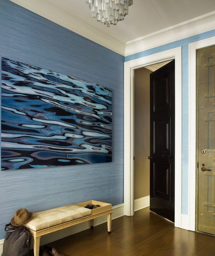 Ce produit est similaire au plâtre, mais diffère par sa texture, une large gamme de couleurs et le processus d'application. Grâce au grand choix, ils peuvent être trouvés pour presque tous les styles d'intérieur dans un petit couloir. En ce qui concerne les meubles de style provençal, les papiers peints liquides doux sauront décorer avec succès votre hall.