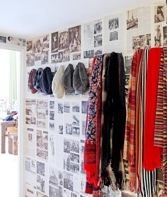 L'idée de créer une galerie d'accueil sur le mur du couloir - de petits fragments sont collés sur un fond uni et encadrés par une belle baguette