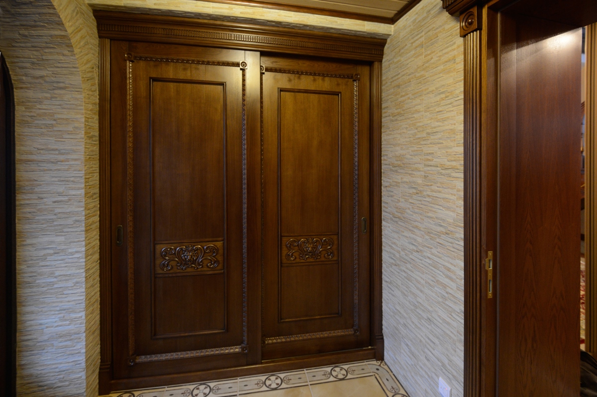 Les armoires en bois massif sont sans aucun doute très solides, impressionnantes et élégantes. Mais ils sont aussi les plus chers en valeur. Cette option convient à l'intérieur luxueux classique d'un hall d'entrée spacieux.