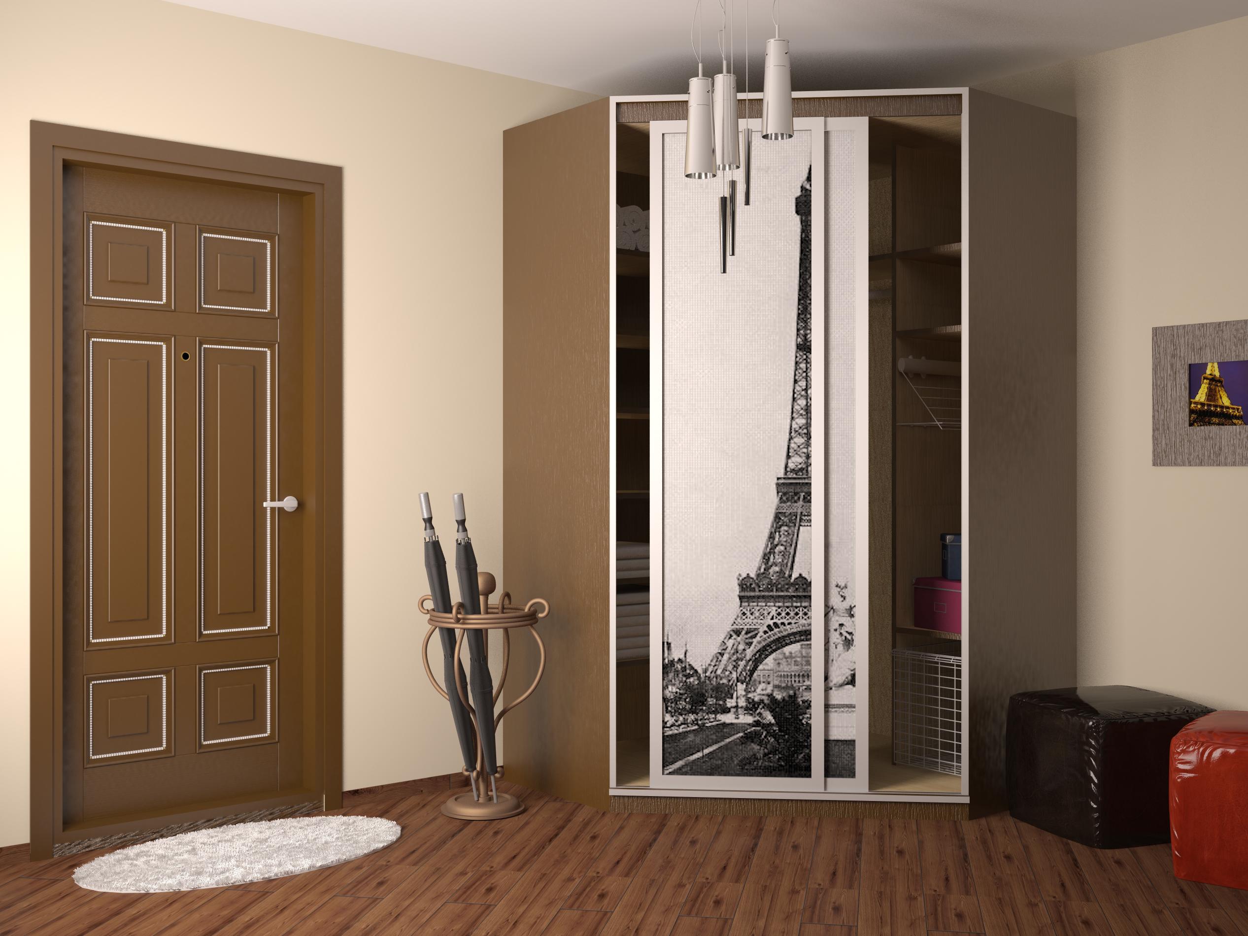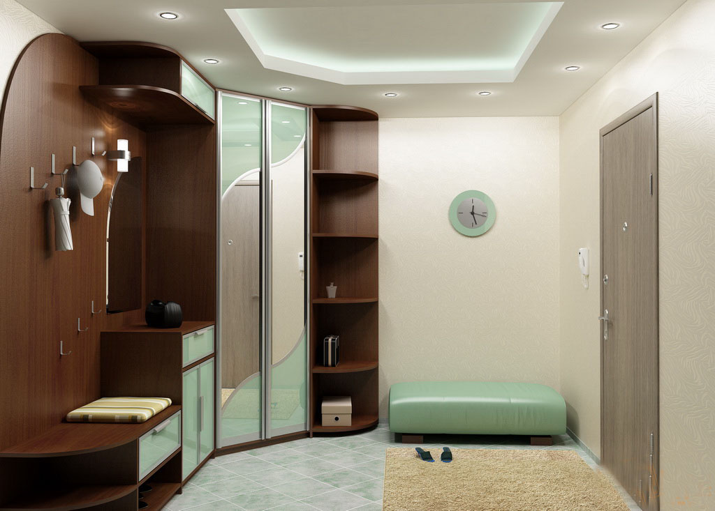 Armoire d'angle dans le couloir - ne prend pas beaucoup de place, aide à équiper rationnellement un petit espace. Il existe de nombreuses options différentes pour ces armoires: