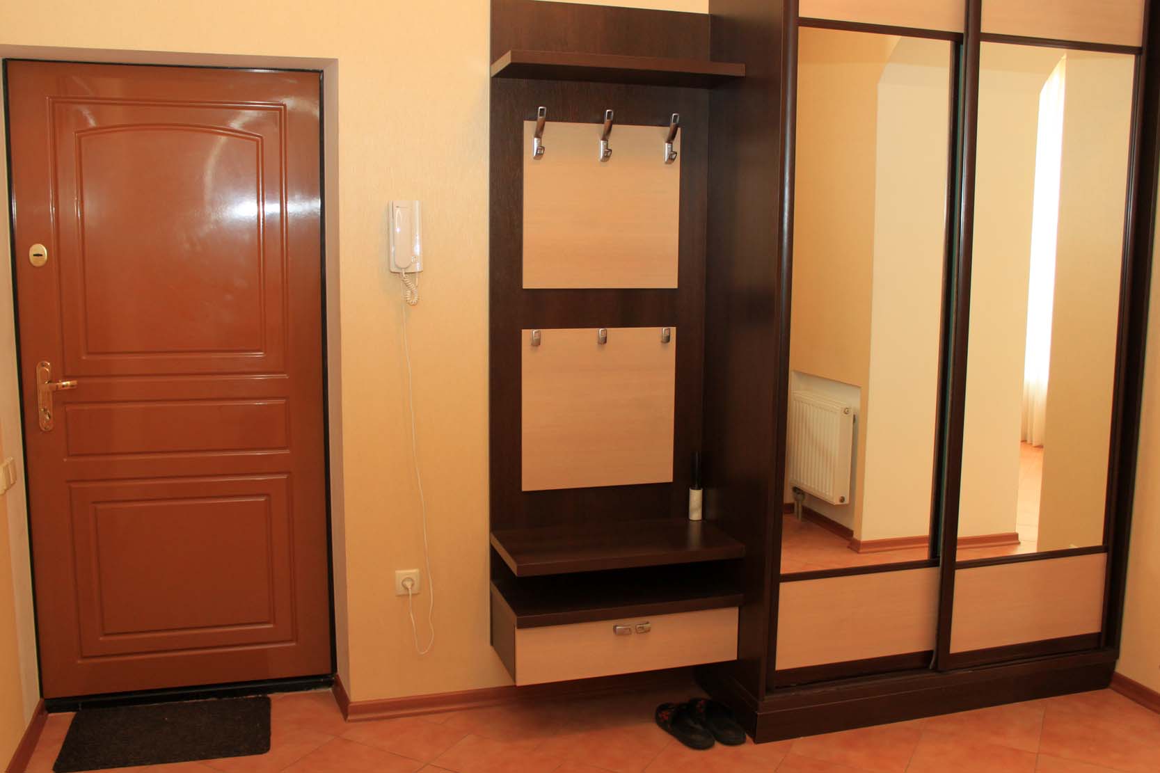 Si vous ne voulez pas voir le couloir monotone, prenez un meuble avec des inserts sombres