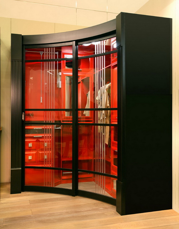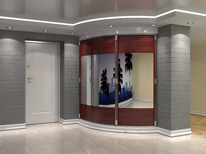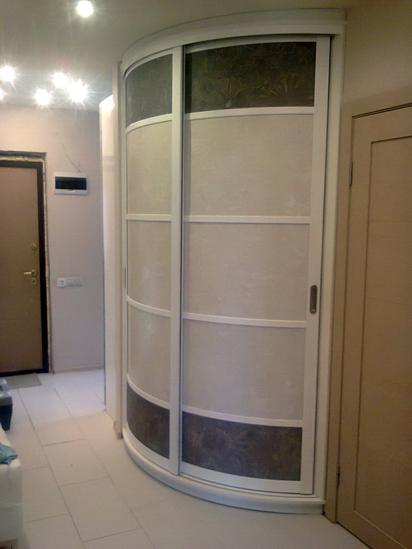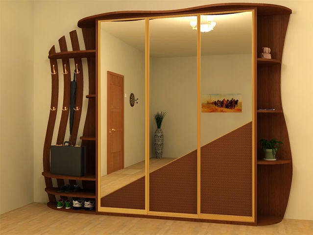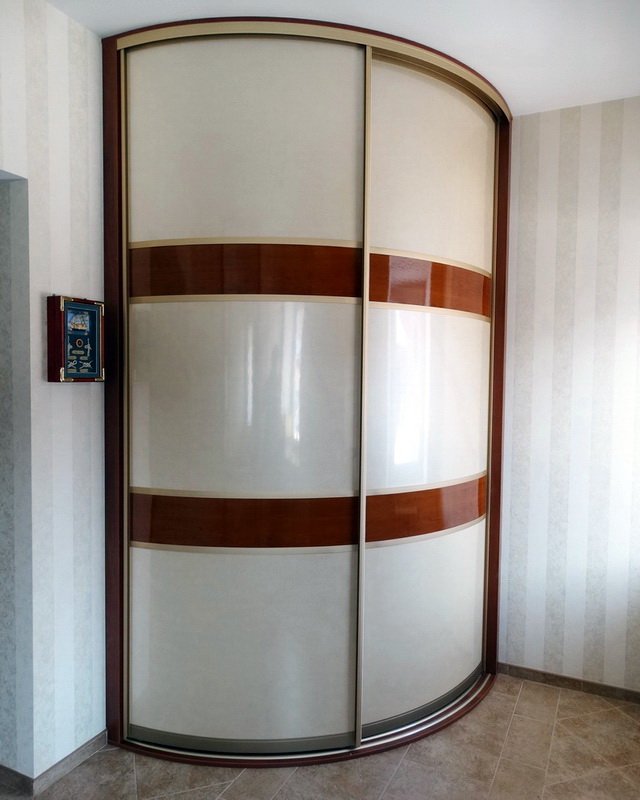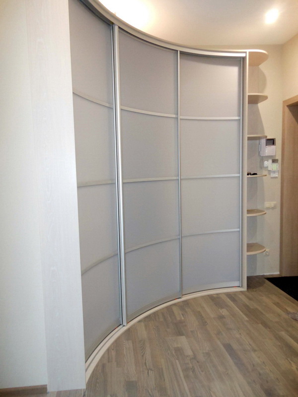 - une armoire à rayons, à la fois convexe et concave, est une conception assez compliquée, qui peut inclure des détails divers comme un banc, une commode, etc., une armoire aussi élégante convient à un couloir spacieux.