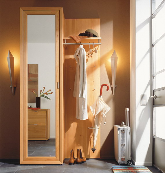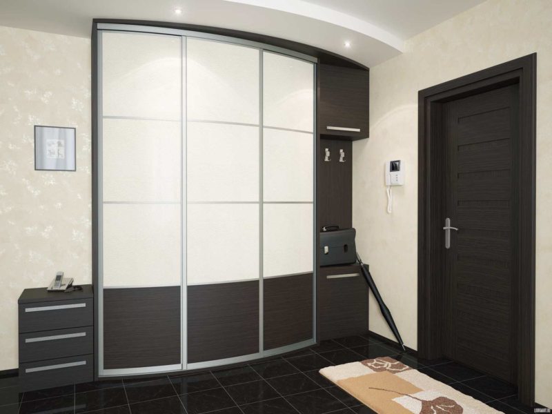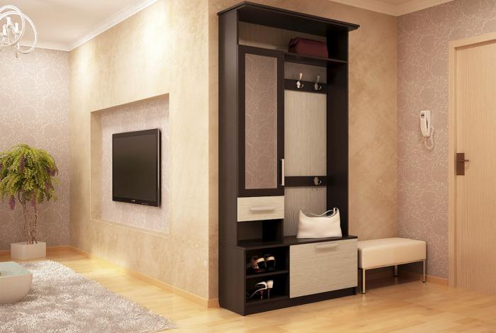 Une grande attention doit être portée à la qualité des meubles. Il doit être fait d'un matériau durable et fiable, complété par un matériel solide. Une exigence importante pour l'armoire est son aspect attrayant. L'armoire sera l'élément central de l'intérieur. Sa conception doit correspondre parfaitement à la direction choisie du couloir. Une excellente solution sera la conception de portes avec une surface miroir.