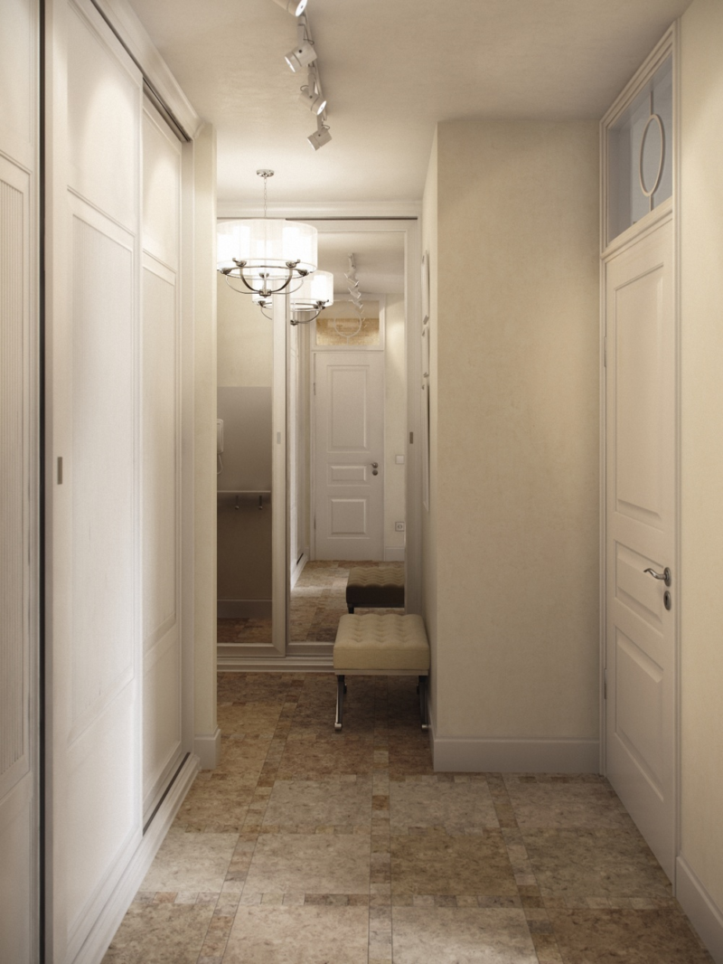 | Classique | Avec ce style, vous pouvez ajouter du luxe à l'appartement. Pour la conception d'un long couloir, des matières premières naturelles doivent être utilisées: des matériaux sûrs et naturels. La palette de couleurs des murs doit être calme, légèrement étouffée. Décor - concis, sobre. |