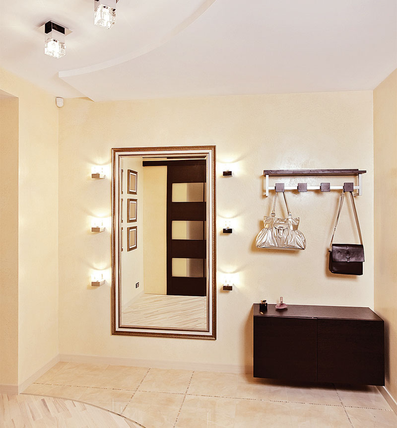 Pour que l'éclairage soit le plus rationnel possible, il est nécessaire d'organiser l'illumination du miroir, ainsi que d'éclairer bien les meubles et autres objets importants. Dans ce cas, le couloir sera pratique et confortable.