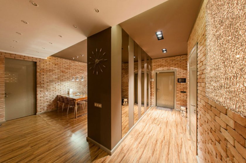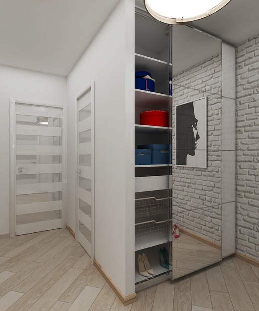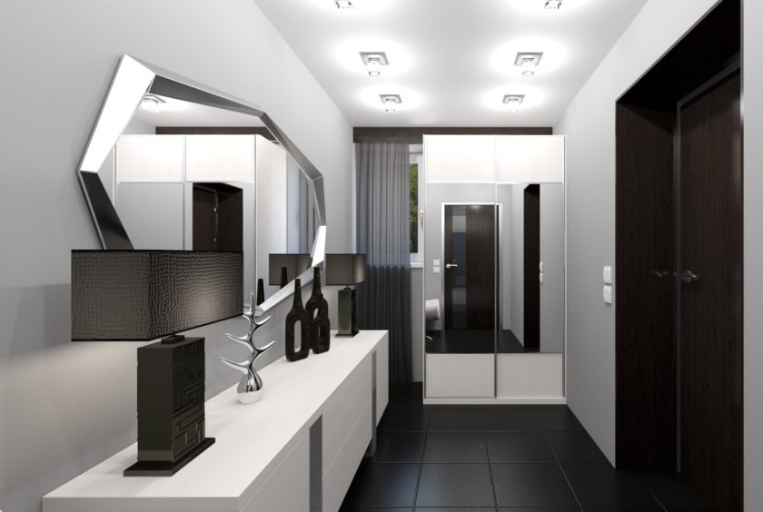 La garde-robe en miroir augmentera visuellement les dimensions du couloir