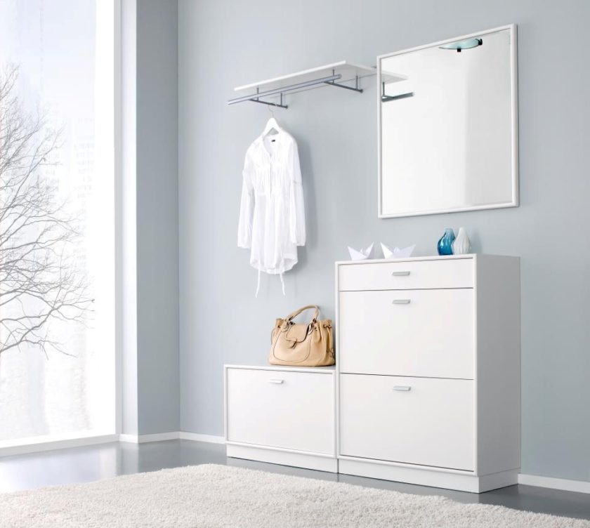Excellente idée pour le couloir - une étagère intégrée massive au lieu du banc habituel