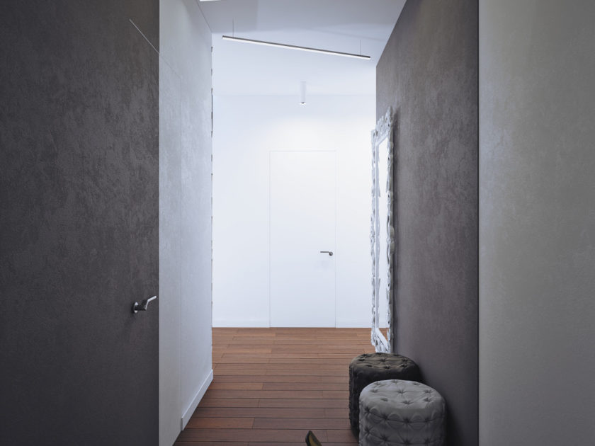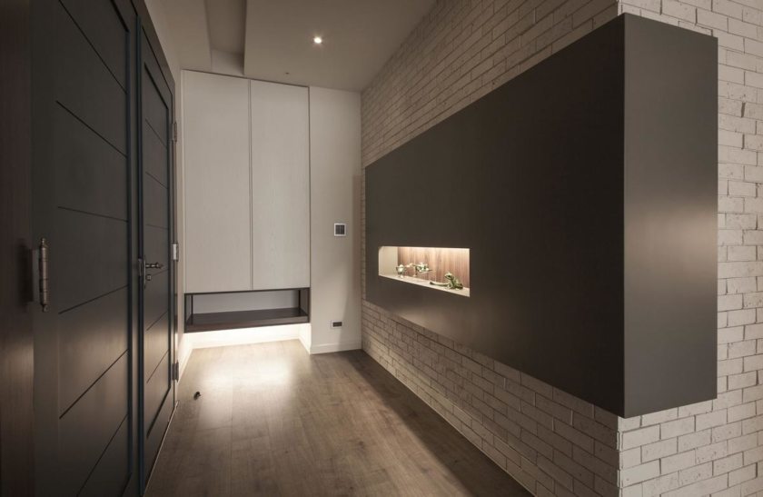 Un couloir moderne dans le style du minimalisme peut avoir n'importe quelle séquence et être tout aussi élégant et pertinent.