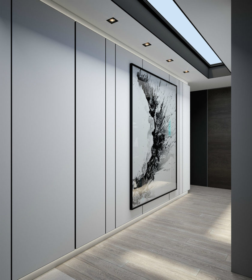 Un exemple de décoration avec des peintures du couloir dans le style du minimalisme