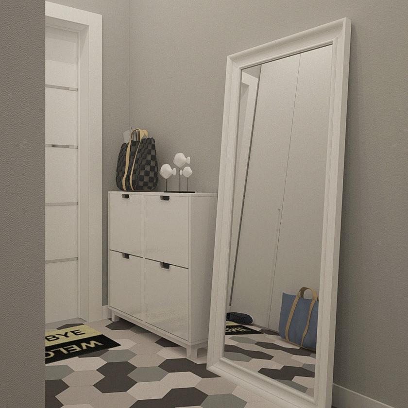Dans les petits couloirs ou couloirs, il n'est pas toujours possible d'installer une armoire, et vous devrez donc faire avec un cintre compact, un étagère à chaussures et un miroir. Si le miroir est accroché au mur, vous pouvez installer en dessous une élégante console pour les petites choses. Les grands miroirs du plafond au sol, qui joueront une augmentation visuelle de l'espace, peuvent devenir une solution de conception pratique.