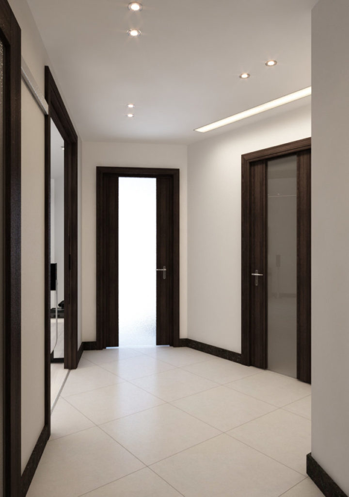 Pour un petit couloir ou couloir, des spots qui peuvent être situés dans toute la zone du plafond conviennent.
