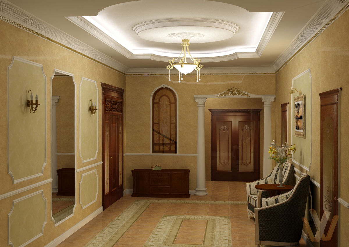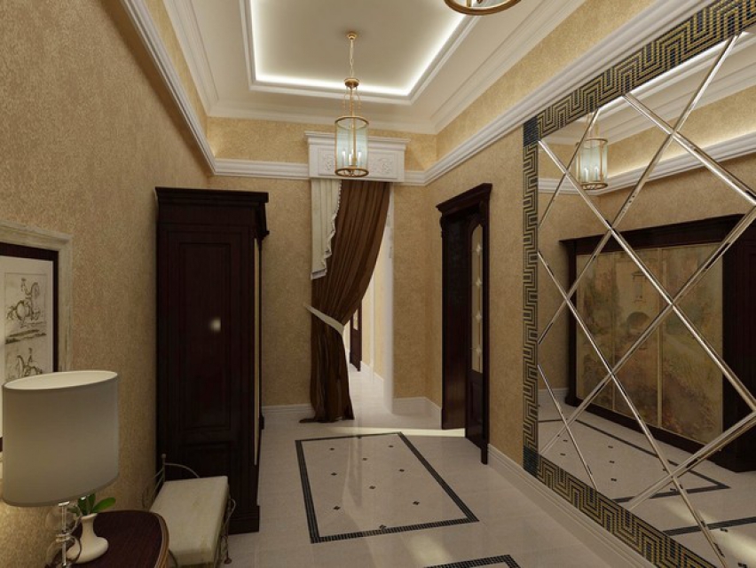 | Classique | Suppose la prédominance des couleurs claires dans la décoration des murs. Papier peint sélectionné cher. La finition du sol doit être aussi simple que pratique. Les carreaux, les carreaux de marbre sont parfaits. Le design de la pièce est décoré de moulures en stuc, de lampes originales, d'éléments forgés. |