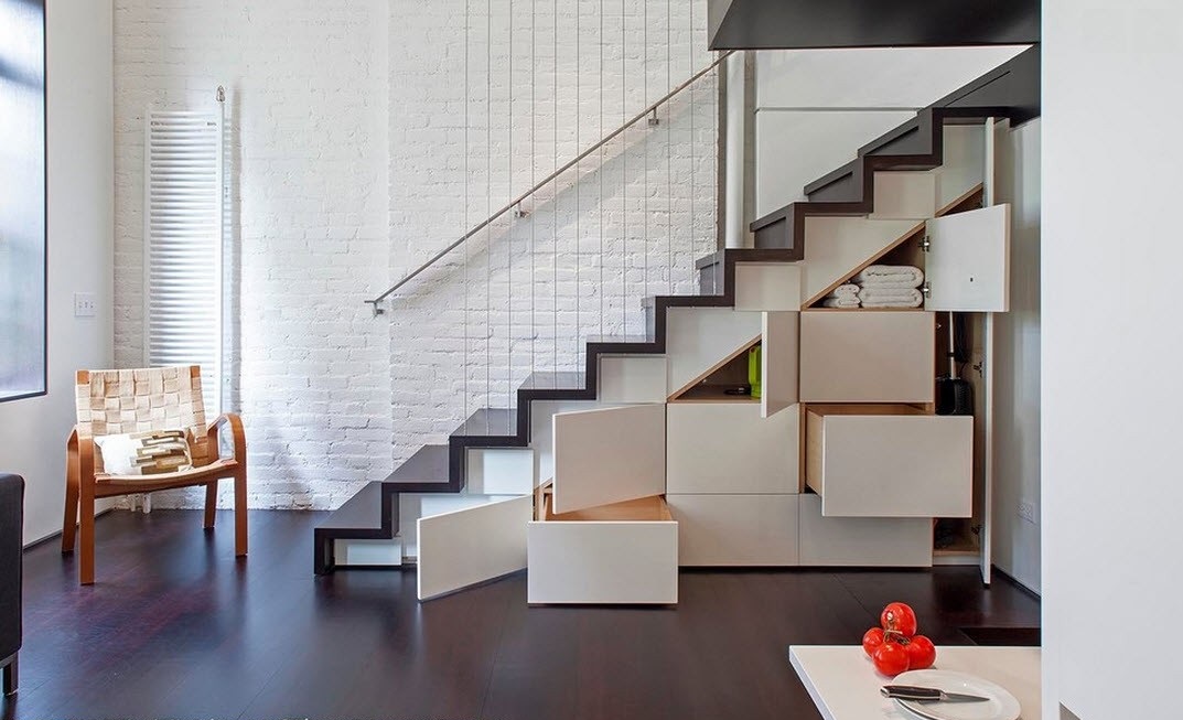 Si le hall est également prévu au deuxième étage de la maison, il est nécessaire de l'adapter avec style à une pièce similaire ci-dessous.
