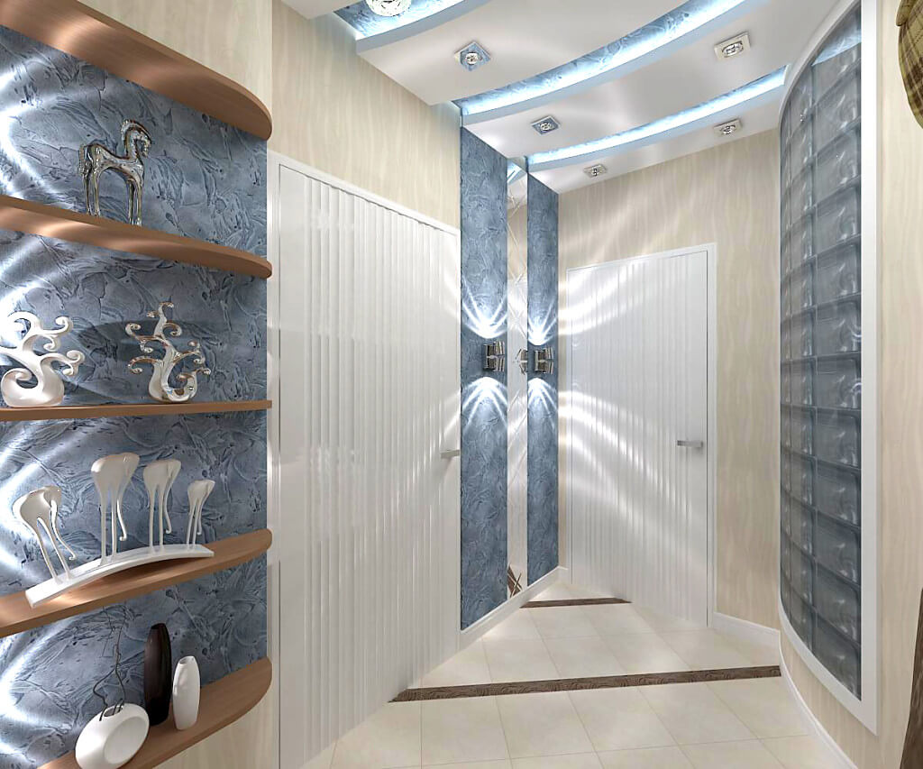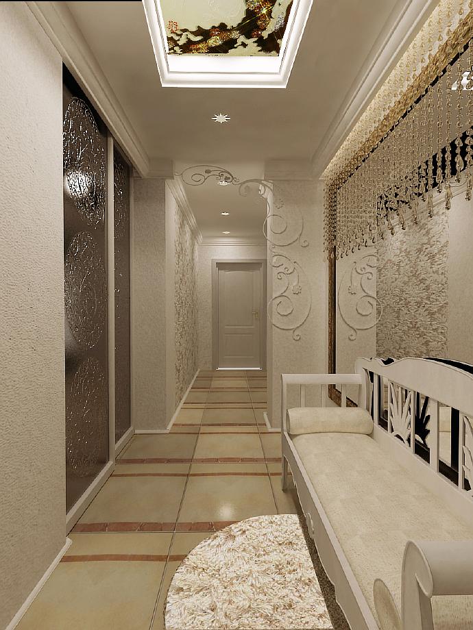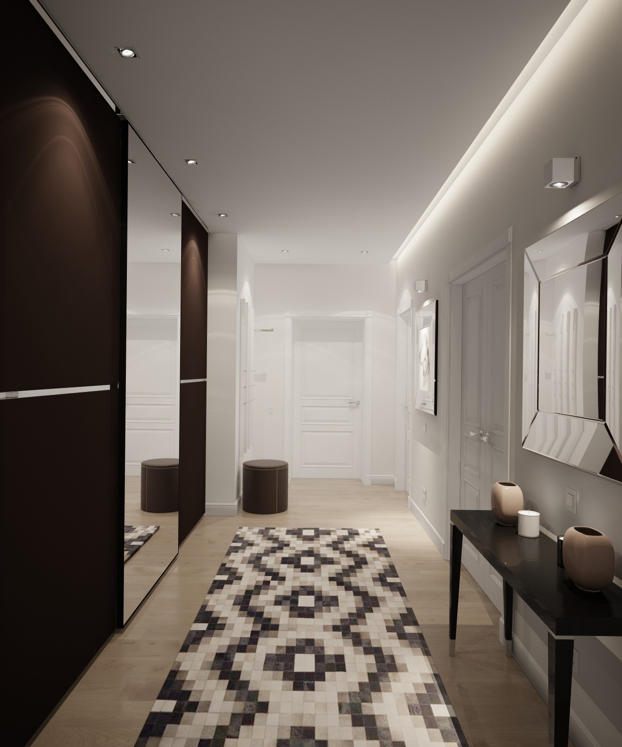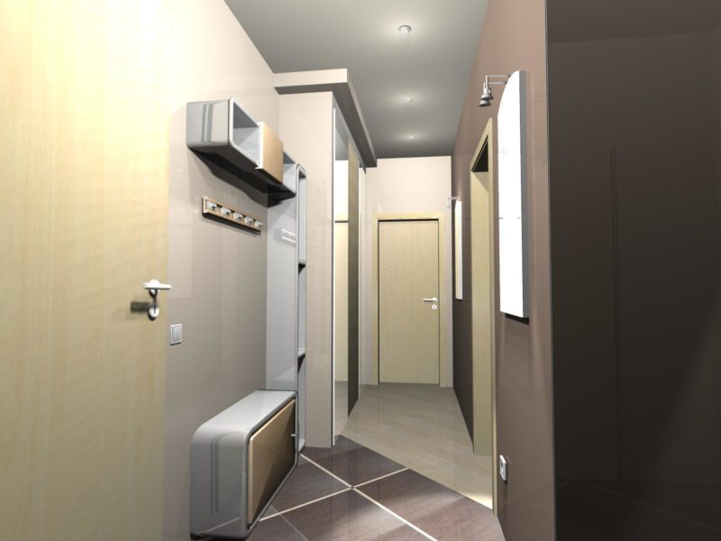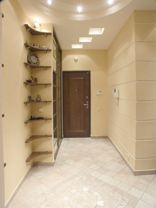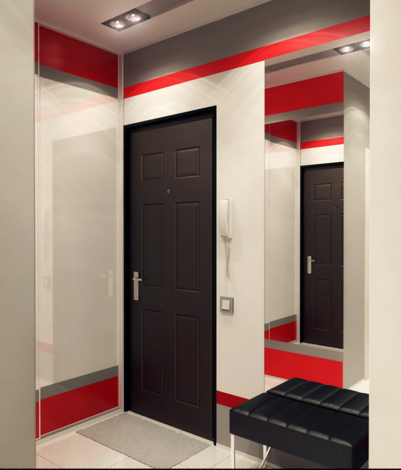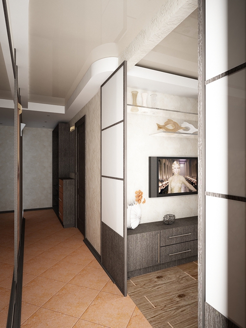 Si le couloir est assez petit, vous pouvez organiser la garde-robe coulissante, par exemple, dans le salon ou la remplacer par une version plus miniature.