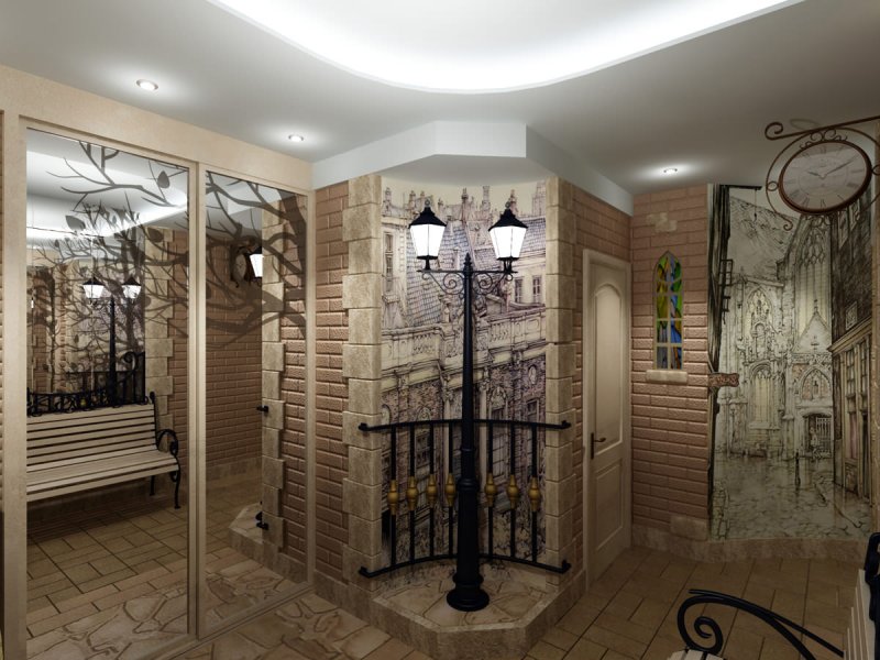 Si le couloir n'est pas de grande taille, il est préférable d'acheter du papier peint photo avec ce motif qui élargirait visuellement la pièce.