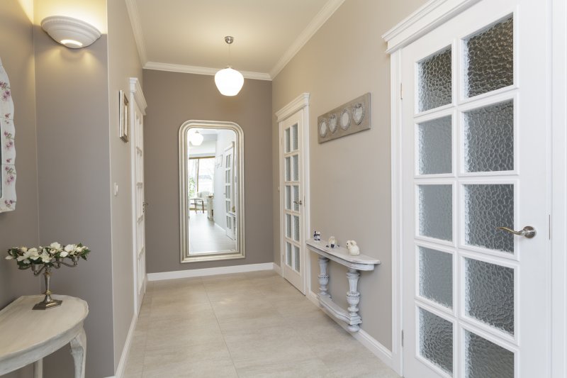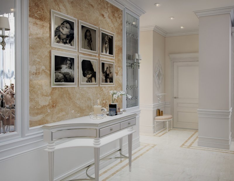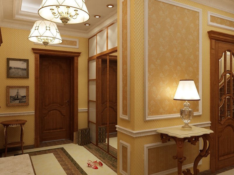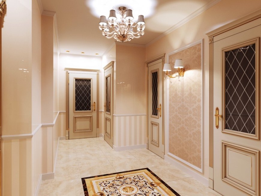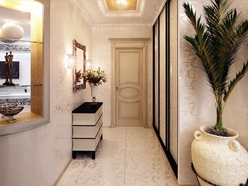 Il ne sera surprenant pour personne que le style classique soit classique et qu'il n'ait pas peur du passage du temps, de la variabilité de la mode. Le fait qu'une telle tendance stylistique ne se démodera jamais nous est également indiqué par son nom même. Traduit du latin, le mot «classique» signifie «exemplaire», «correct». La création de ce style à l'intérieur du couloir est basée sur le choix d'éléments en or, en bronze, éventuellement en argent, des nuances claires de papier peint, l'utilisation de parquet au sol, un mobilier luxueux avec des branches, des monogrammes et du vernissage. L'utilisation de carreaux et de meubles anciens et vintage est la bienvenue.