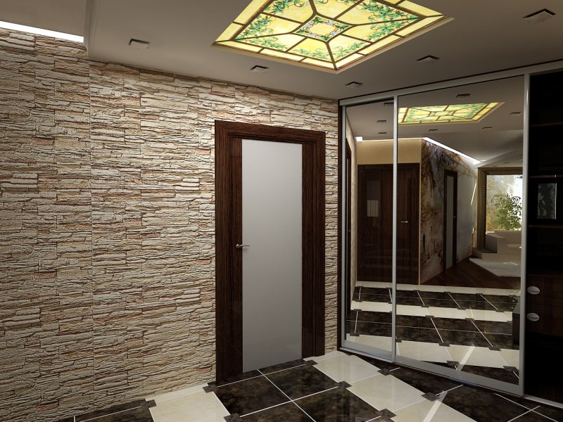 Papier peint en pierre et brique pour un grand couloir: à quoi il ressemble à l'intérieur. Sélection de photos