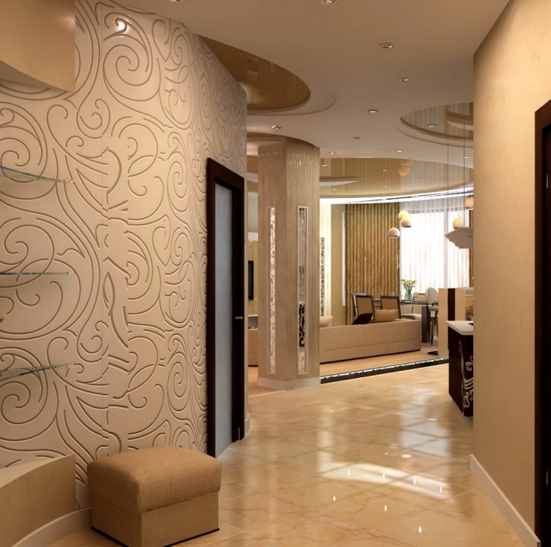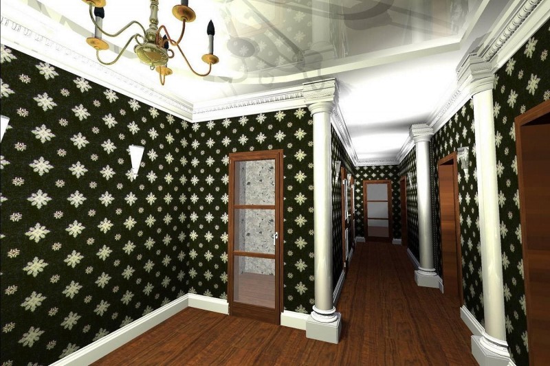 - Options de conception de papier peint dans un grand couloir pour une maison privée et une maison préfabriquée. Sélection de photos