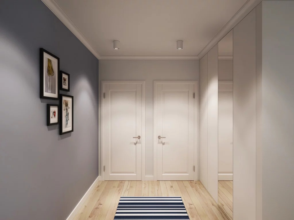 Les concepteurs recommandent d'utiliser la couleur claire comme couleur principale pour peindre les murs. D'autres peintures sont mieux utilisées pour appliquer le contraste, l'accentuation. Ce sont des nuances claires de gris qui peuvent augmenter visuellement l'espace, le rendre harmonieux. Dans un tel couloir, l'humeur s'améliore.