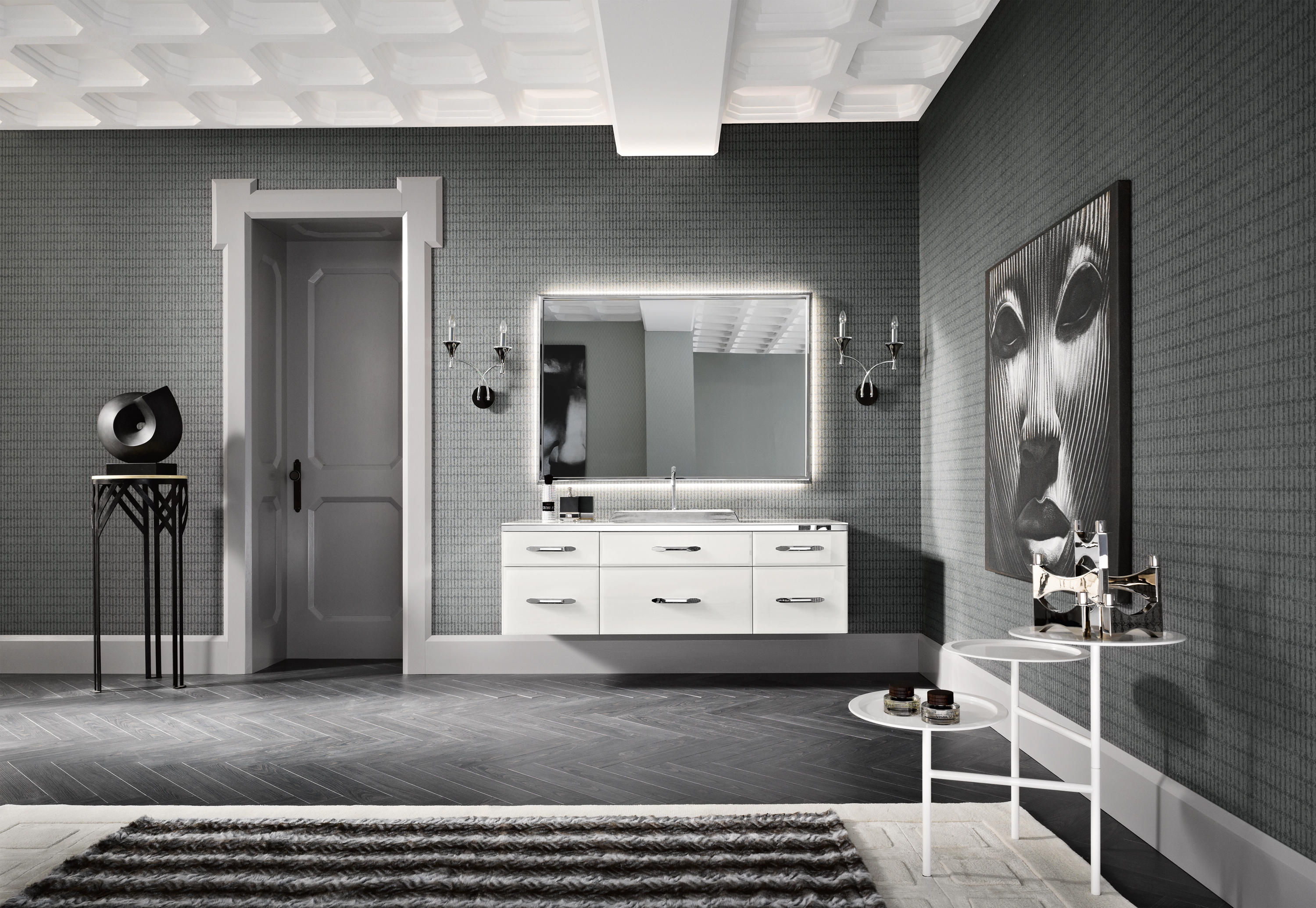 Les murs peuvent être peints en gris, le mobilier sera avec des éléments noirs, la couleur principale du mobilier et / ou de la décoration est blanche.