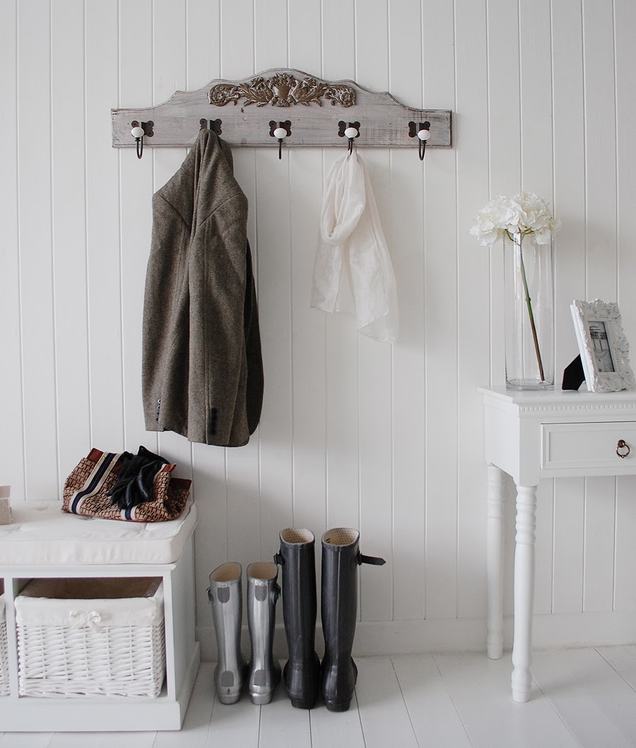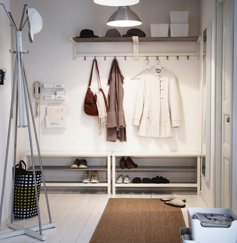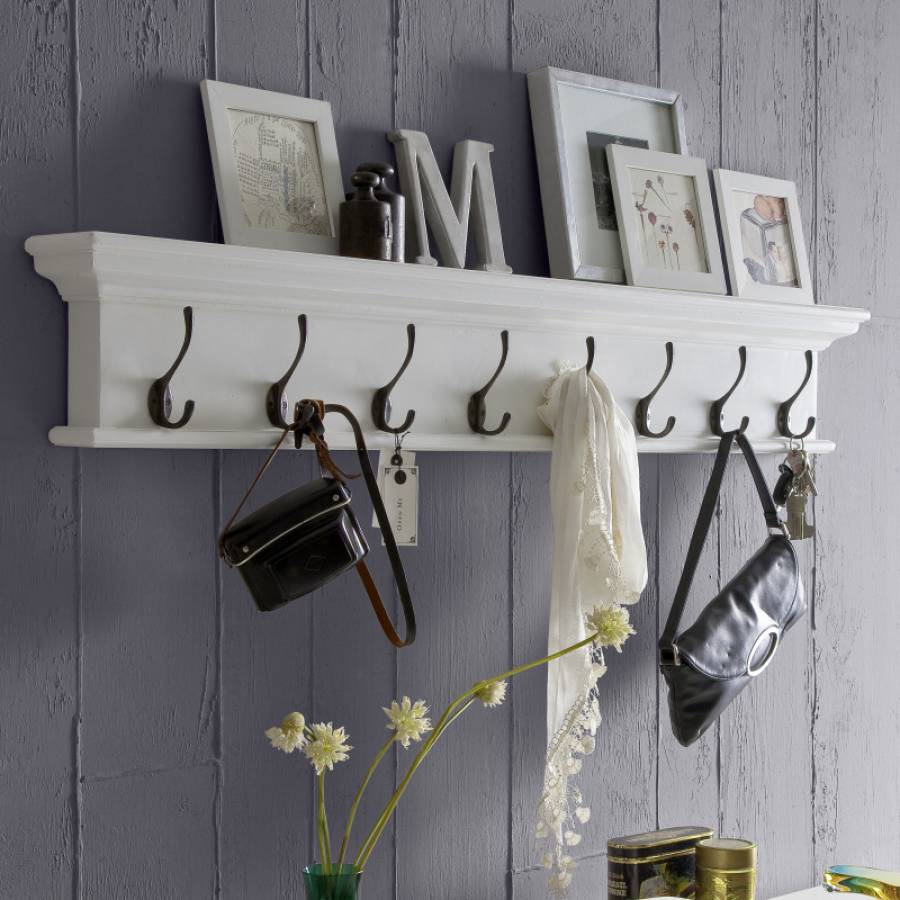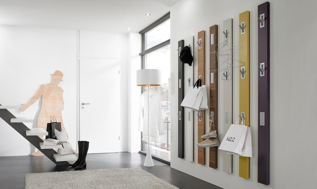 Ils ressemblent à des barres transversales avec des crochets accrochés au mur. La catégorie de prix est budgétaire, mais il y a suffisamment d'inconvénients: il s'agit d'un support peu pratique, des outils spéciaux sont nécessaires pour le fixer, les crochets sont destinés uniquement aux vêtements, il n'y a souvent pas de place pour les chaussures et les chapeaux. Mais il y a des cintres muraux dans le couloir avec une étagère pour les chapeaux, s'ils ne se ferment pas, lors d'un stockage prolongé, le casque peut se couvrir de poussière.