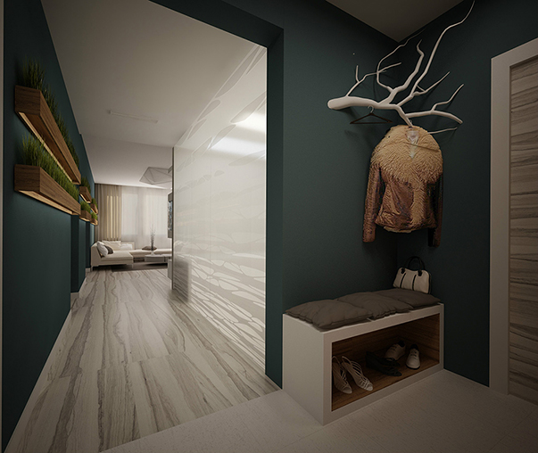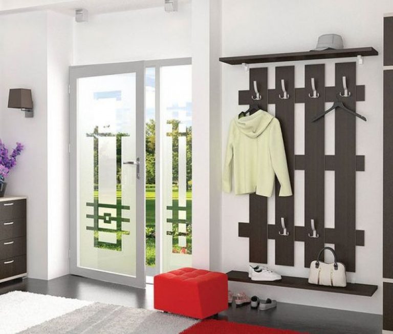 Déjà depuis le couloir, une image du confort dans la maison est révélée. Le cintre est en mesure d'ajouter une touche à l'atmosphère de la pièce. Ils sont au sol, au mur, forgés, en différents matériaux, comme le bois ou le métal.