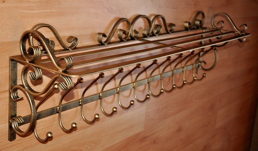 Les produits forgés sont incroyablement durables. Leur choix est super. Il existe des modèles muraux et au sol. Ces cintres ont l'air inhabituels et élégants, et soulignent le goût raffiné du propriétaire de la maison. De beaux crochets décoratifs et un plexus inhabituel ajouteront de l'élégance. Il existe des modèles combinés avec un miroir, avec des étagères.