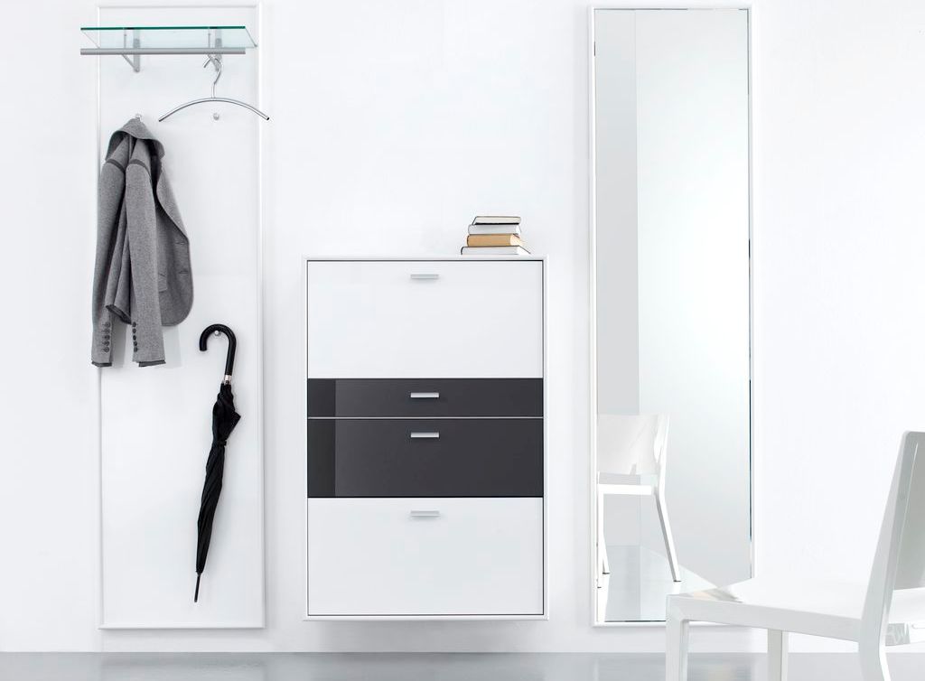 Si tout le monde ne porte pas de chapeaux, alors personne ne va sans chaussures. Pour vous assurer que les chaussures ne se tiennent pas dans une rangée dans le couloir, vous avez besoin d'une étagère pour les chaussures. Il y a des options avec la porte fermée et ouverte, il y a aussi des divisions spéciales pour chaque paire de chaussures.