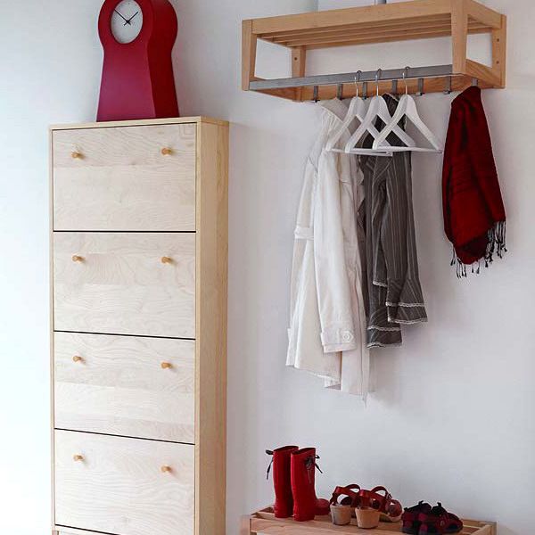 La beauté et l'odeur du bois seront appréciées par beaucoup. Des casiers pratiques ajoutent des fonctionnalités. Et la palette de couleurs est très large, il est possible de choisir des couleurs même pour un couloir lumineux.