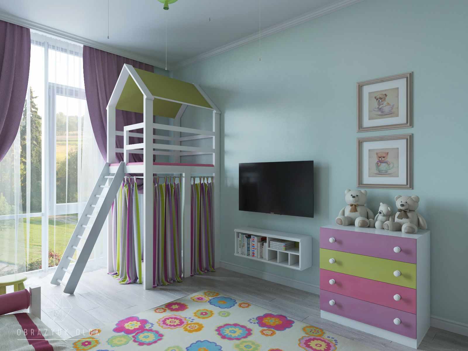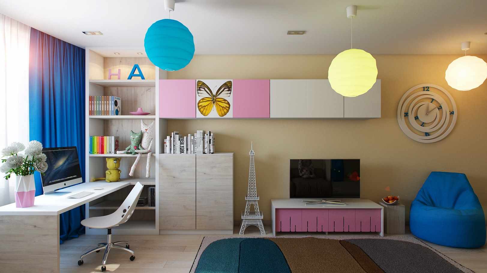 O esquema de cores do quarto das crianças desempenha um papel importante.
