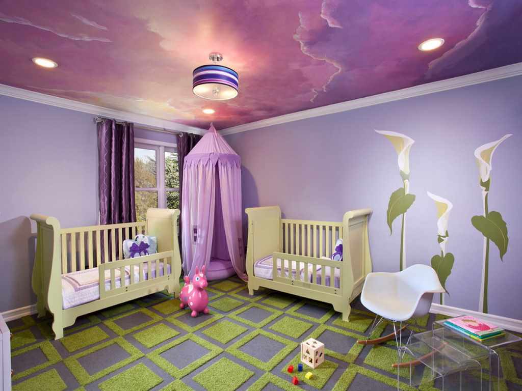 Duas meninas em um quarto de crianças - características da criação de um interior