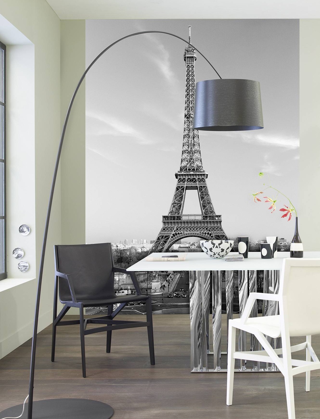 Papéis de parede de tamanho amplo permitem transformar toda a parede livre da sala.