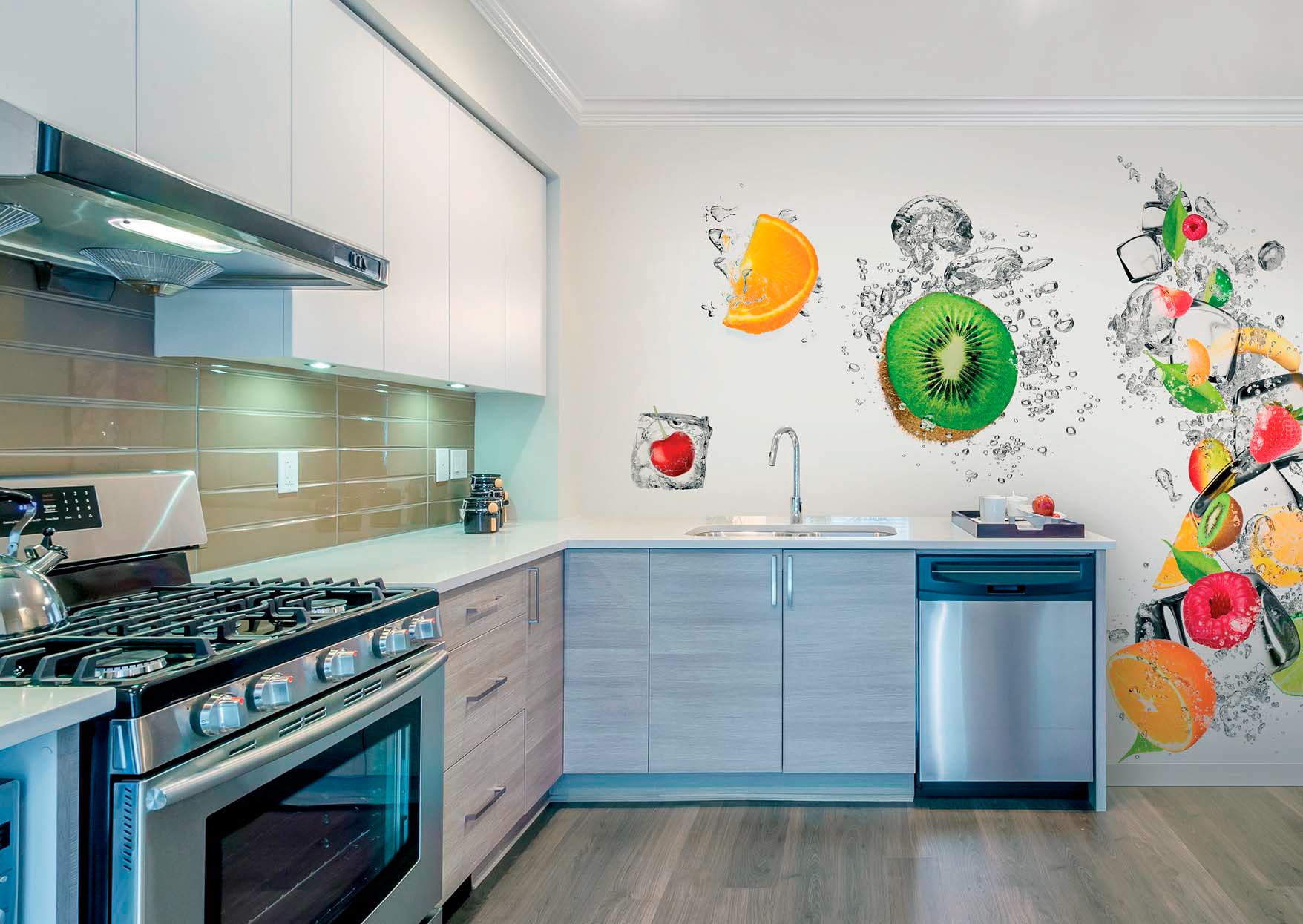 Fotos de papéis de parede 3D para a cozinha fascinam com seu brilho e realismo.