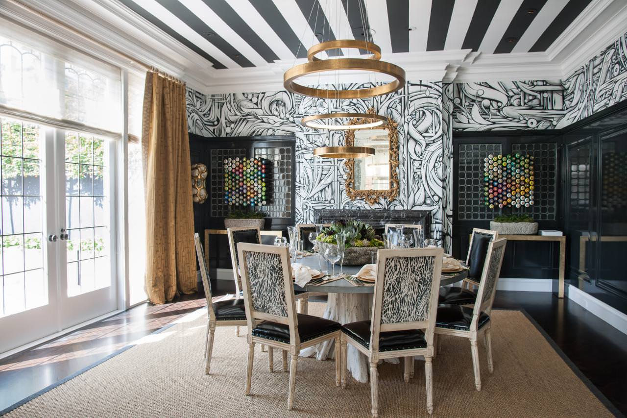 Um grupo chato de jantar com móveis de madeira pode ser radicalmente transformado pintando cadeiras em cores diferentes