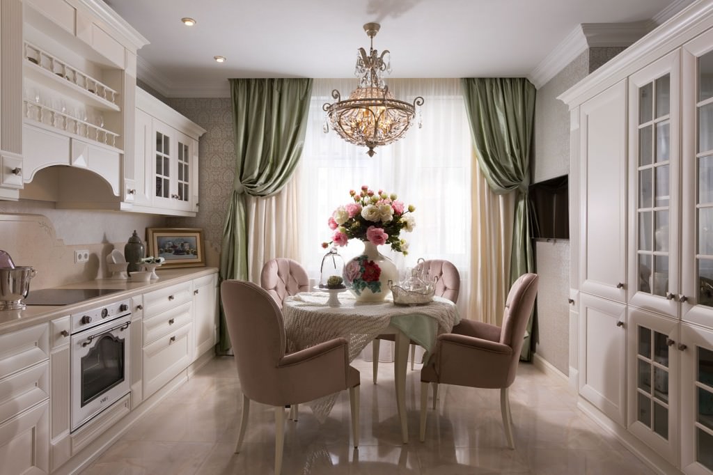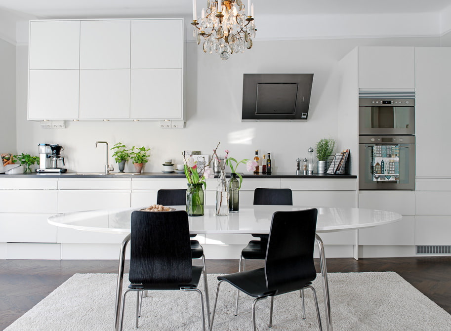 Importante! Ao examinar fotos de interiores em busca de uma solução de design para sua cozinha e cadeiras ideais, você deve definitivamente se concentrar em cozinhas de tamanho e layout semelhantes. Os mesmos móveis em uma cozinha pequena e grande terão uma aparência completamente diferente.