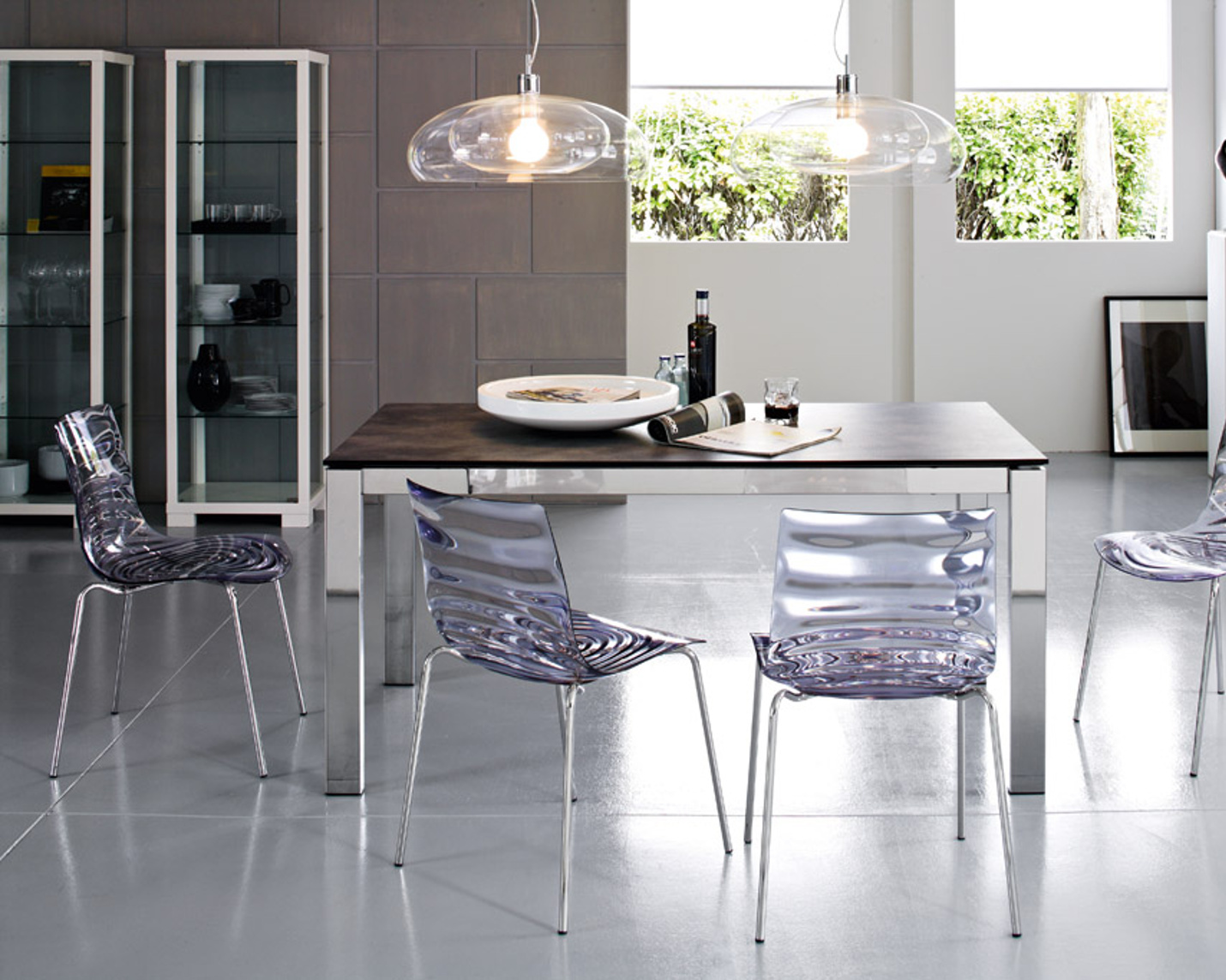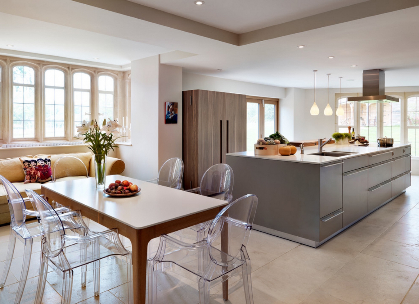 Poltronas transparentes complementam perfeitamente a área de jantar com um design moderno em alta tecnologia ou estilo minimalista, embora não importe em que faixa as paredes e outros móveis serão decorados.