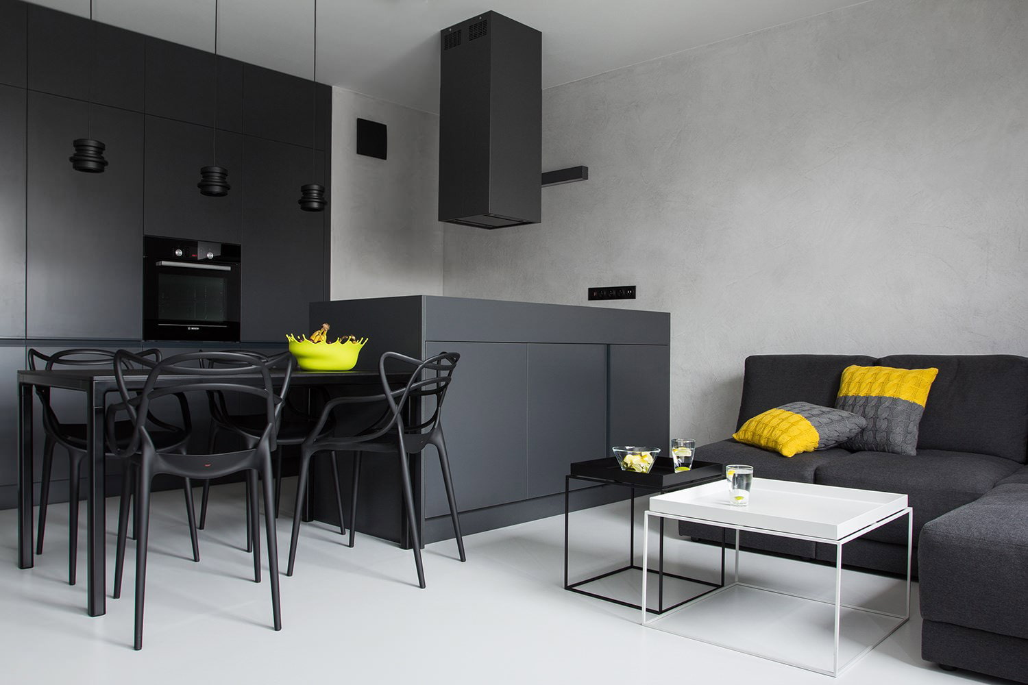 Um interior completamente neutro deixará de parecer comum se você adicionar duas cadeiras amarelas