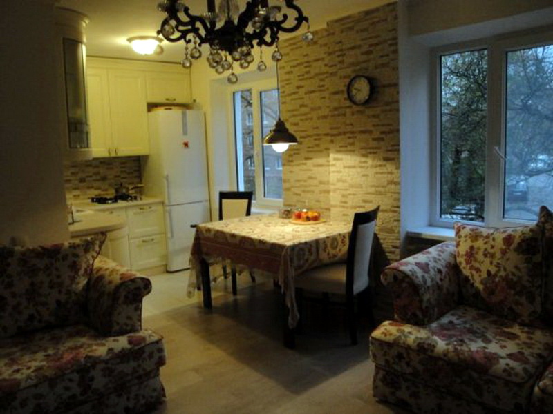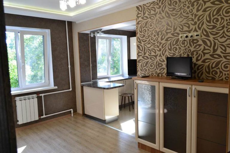 Opção de reabilitação de um quarto em Khrushchev - a mesa de jantar permanece na cozinha