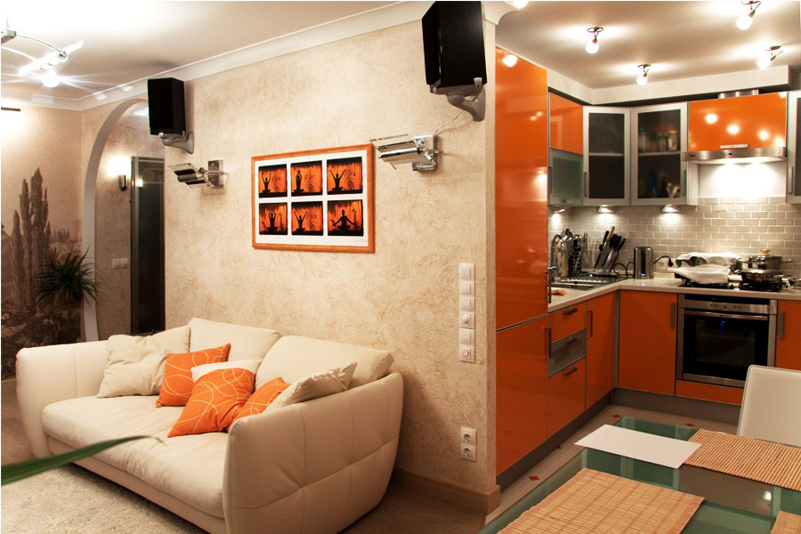 Você também deve se familiarizar com as soluções básicas de design. Antes de combinar o espaço da cozinha e a sala de estar, estude todas as vantagens e desvantagens dessa solução, para que você não precise refazê-la no futuro.