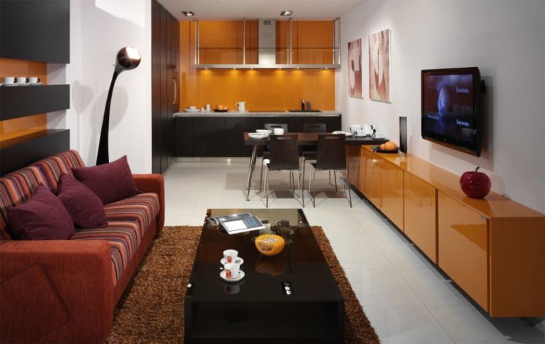 Para conectar a cozinha e a sala, você deve distribuir corretamente o espaço. Apesar da falta de uma divisória, é necessário separar o local para cozinhar e descansar, para que não cause desconforto. Você deve seguir os conselhos de especialistas.