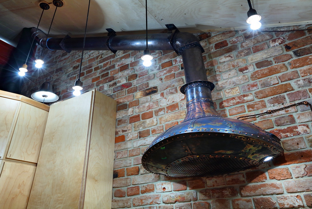 Uma solução interessante de sistema de ventilação para uma espaçosa cozinha Art Nouveau