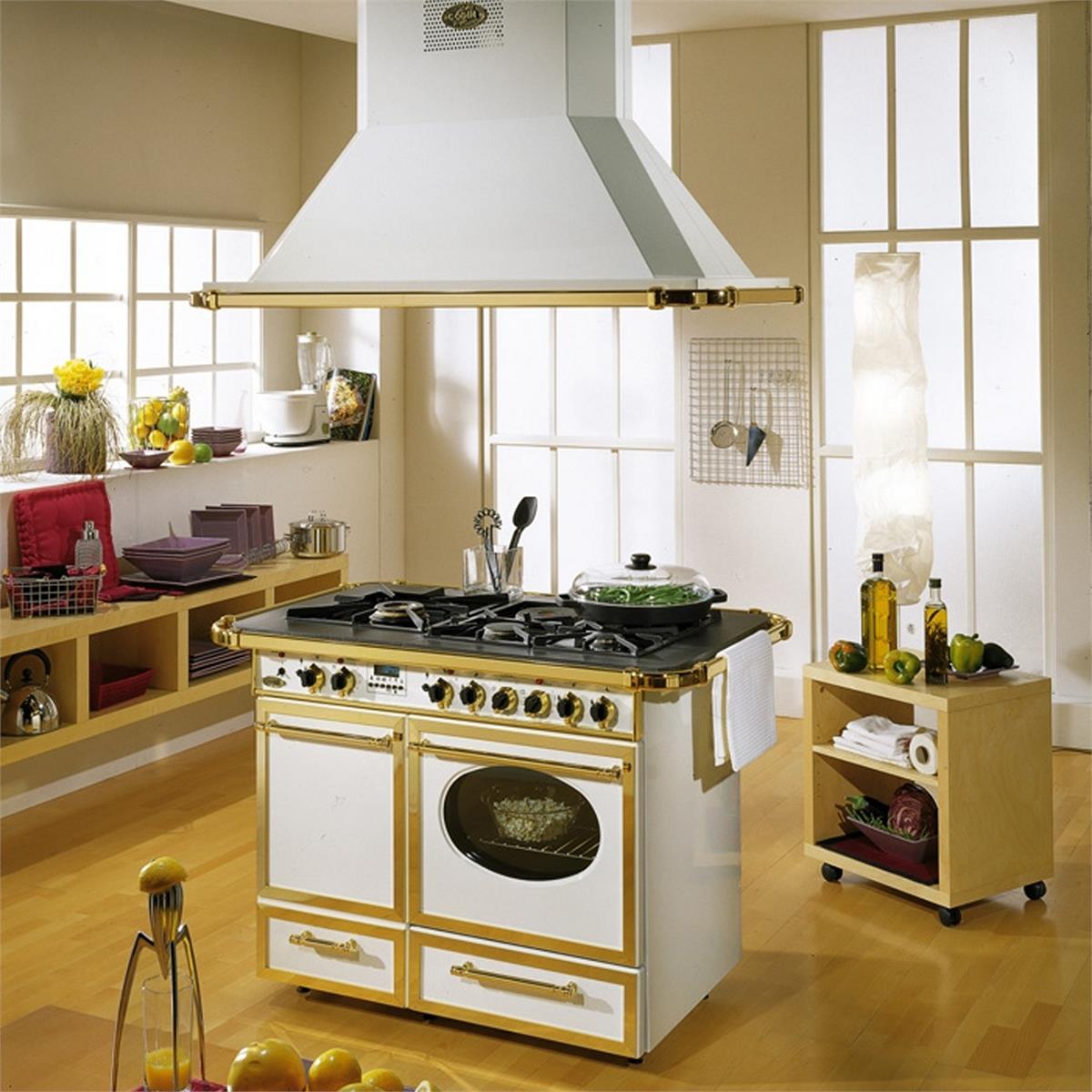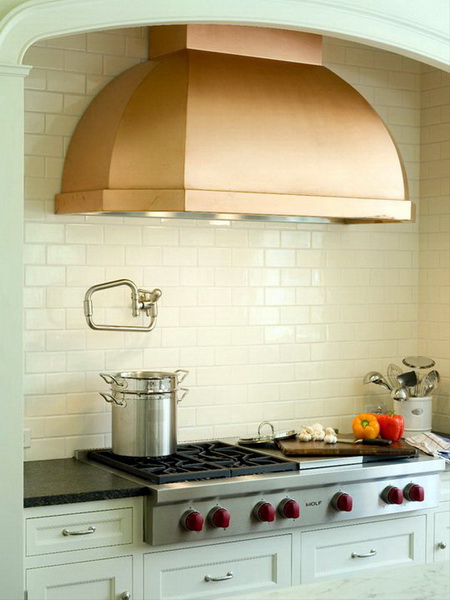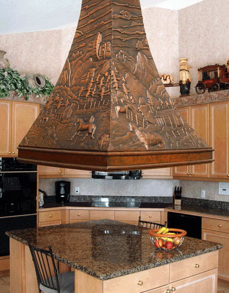 O capô de aço esmaltado combina perfeitamente com o interior clássico, com o estilo do país, Provence, etc. A principal vantagem é uma grande variedade de cores, combinadas com a tonalidade dos eletrodomésticos ou das cozinhas.