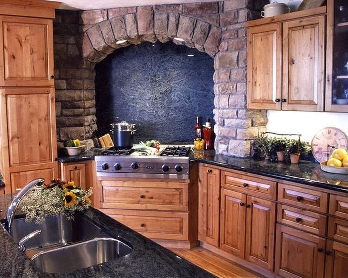 É instalado em duas paredes adjacentes.O design da lareira de canto combina harmoniosamente com a cozinha e também mascara os tubos de comunicação ou as saídas de ar.