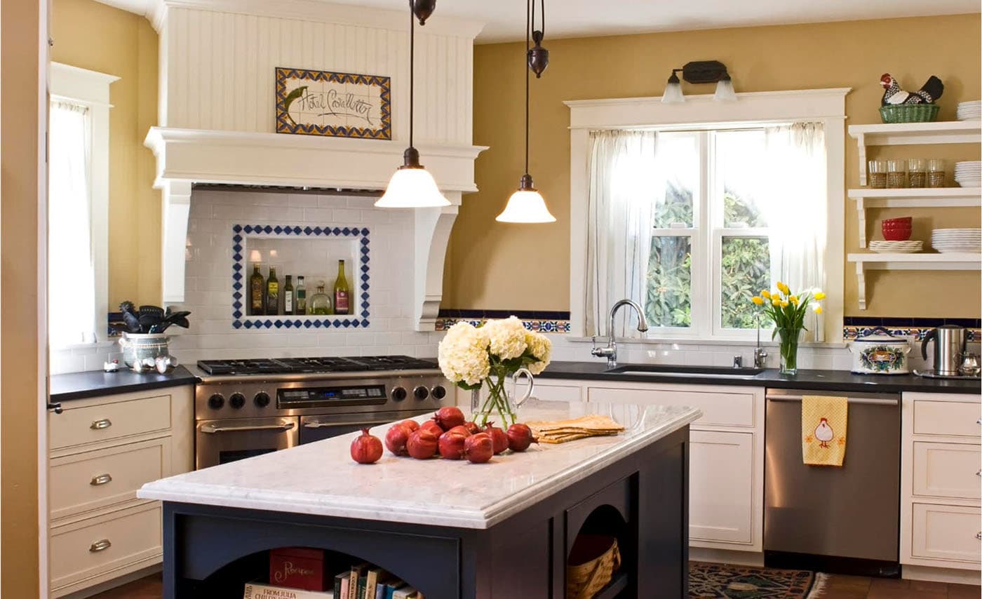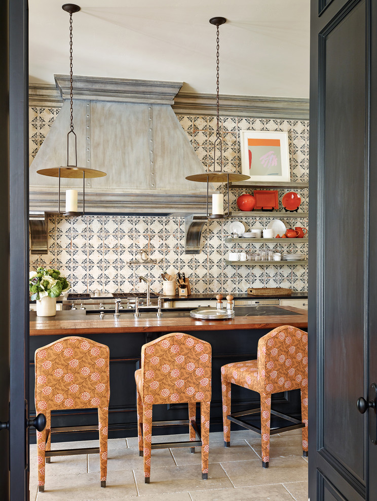 Capuz de cúpula em azulejo marroquino em uma cozinha de estilo mediterrâneo