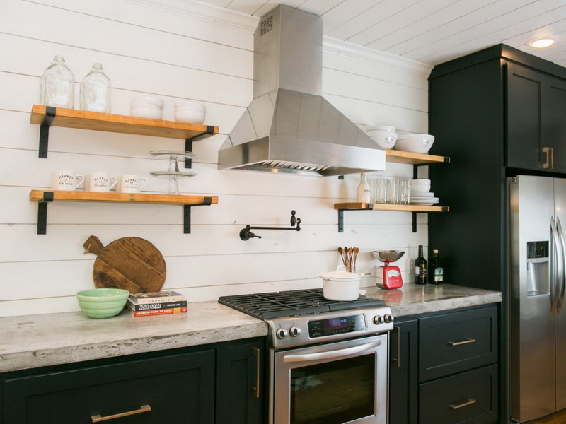 Alguns exaustores deste tipo são utilizados como continuação de um conjunto de cozinha em forma de prateleira.