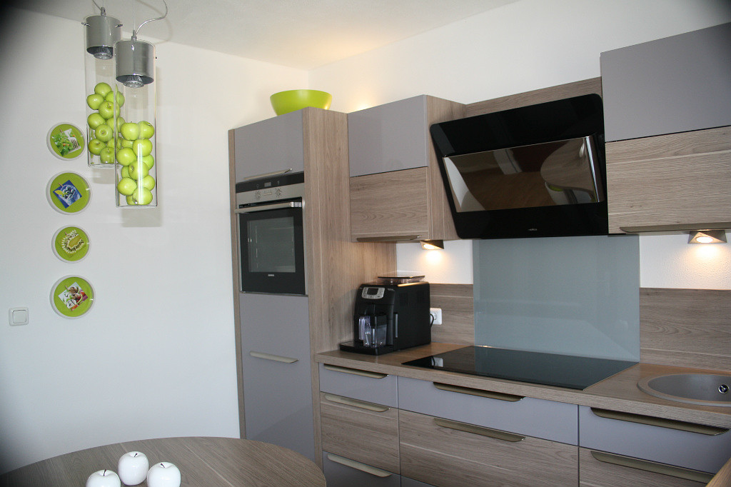 - Uma unidade de cozinha cinza deve contrastar de cor com as paredes. A cor sólida dos móveis pálidos requer uma cor brilhante e saturada das paredes. E vice-versa.